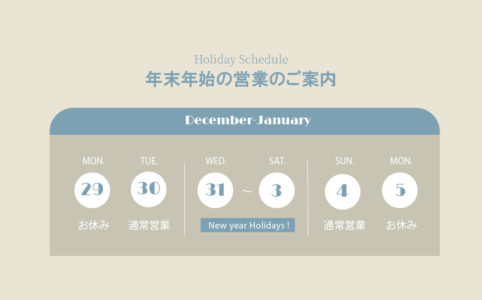 年末年始の営業のご案内